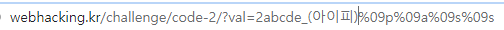 즉 . 정규식을 0번 이상, 아무 문자열을 0번 이상 입력하면 됩니다. 그 뒤의 $_SERVER[REMOTE_ADDR]는 클라이언트의 IP 주소를 가져오는 것입니다. 공유기 IP 주소가 아닌, 고유적인 공인 주소가 필요합니다. 네이버에서 내아이피 등을 검색해 자신의 IP를 가져오세요. 그 뒤도 동일하네요. \t는 탭 문자입니다. 즉 \tp\ta\ts\ts 는 p a s s 와 같은 형태가 되겠네요. URL 상에서는 탭키가 적용되지 않으니, \t를 입력해야 하는데, URL 상에서는 인코딩이 되야 하니 인코딩을 돌려줍시다. 인코딩을 돌리면 \t는 %09 이므로 %09p%09a%09s%09s 등의 형식으로 입력해야 하네요.
