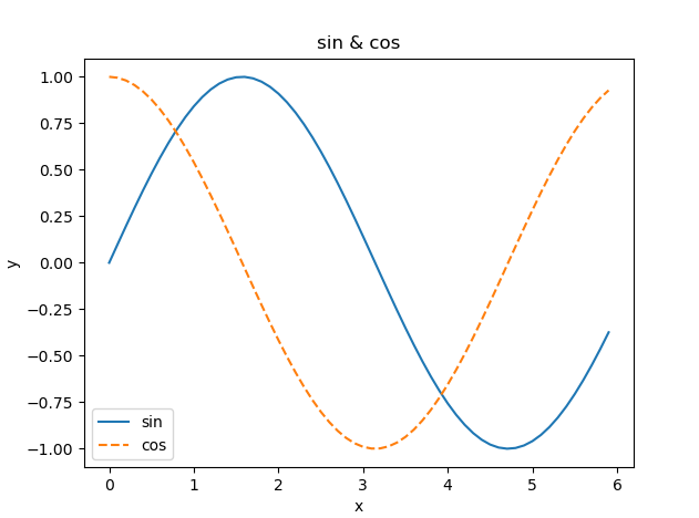 plt.title("sin & cos") # 제목을 sin & cos 으로 설정합니다.